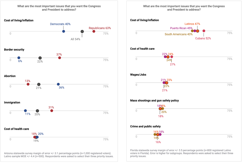 “En los últimos tiempos se ha hablado mucho sobre los cambios en las actitudes y las lealtades partidistas de los latinos”, comentó el Dr. Daron Shaw, presidente de Shaw & Company Research. “Los datos de Arizona y Florida cuentan una historia compleja y heterogénea, con una variabilidad sustancial en las opiniones latinas según la nacionalidad geográfica.”