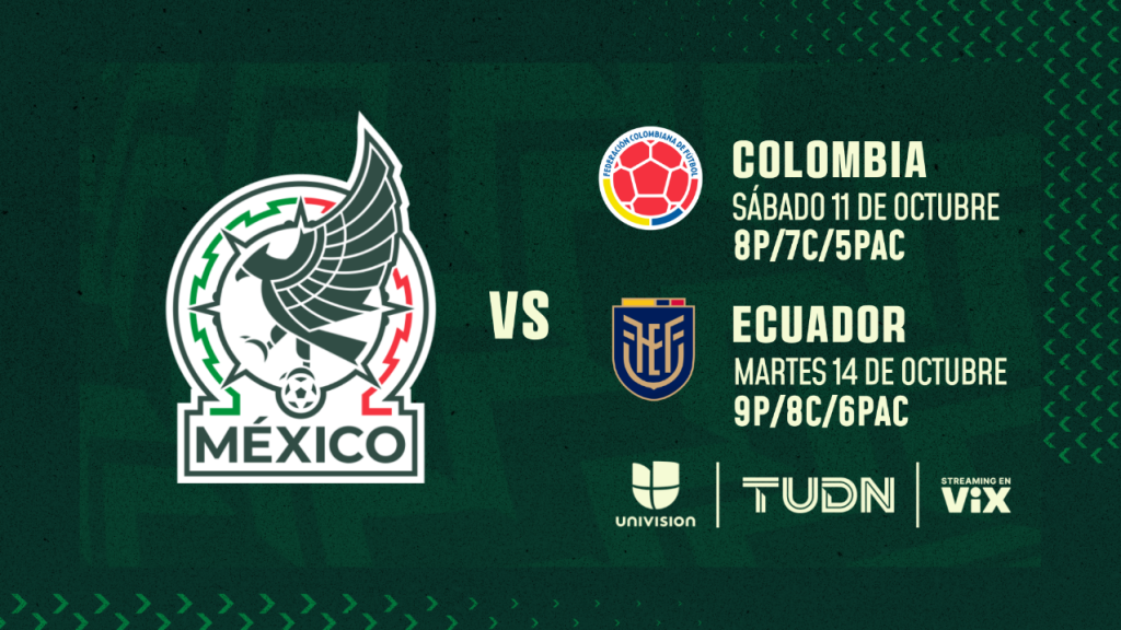 On Saturday, October 11, beginning at 8 p.m. ET, Fútbol Central will set the stage for the highly anticipated clash between the Mexico National Team and Colombia, live from AT&T Stadium in Arlington, Texas, kicking off at 8:30 p.m. ET. The match will be broadcast live on Univision, TUDN, and ViX.