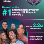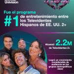 El exitoso programa dominó el horario estelar, posicionándose como el programa de entretenimiento número 1 en toda la televisión entre los televidentes hispanos de EE. UU. 2+.