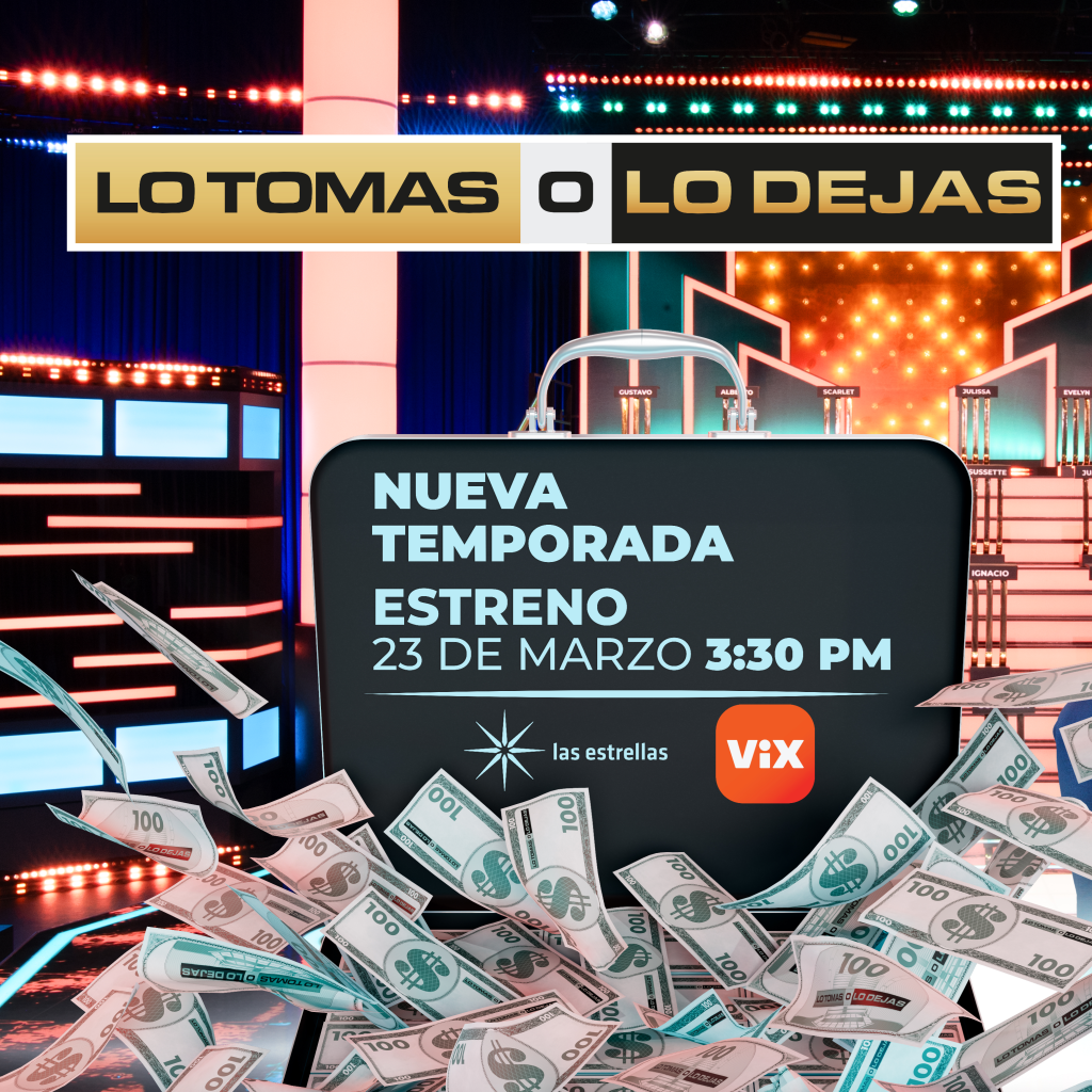 La segunda temporada de Lo Tomas o Lo Dejas, producción de TelevisaUnivision y EndemolShine Boomdog, constará de 65 episodios que se transmitirá de lunes a viernes a las 15:30 horas por las estrellas, a partir del próximo 23 de marzo. Lo Tomas o Lo Dejas también estará disponible en ViX a partir de esa misma fecha.